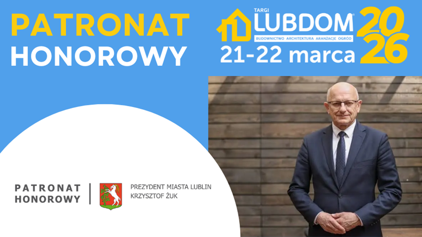 Z przyjemnością informujemy, że Prezydent Miasta Lublin, Pan Krzysztof Żuk, objął Honorowym Patronatem 45. edycję Targów Budowlanych LUBDOM, które odbędą się w dniach 21–22 marca 2026 roku.